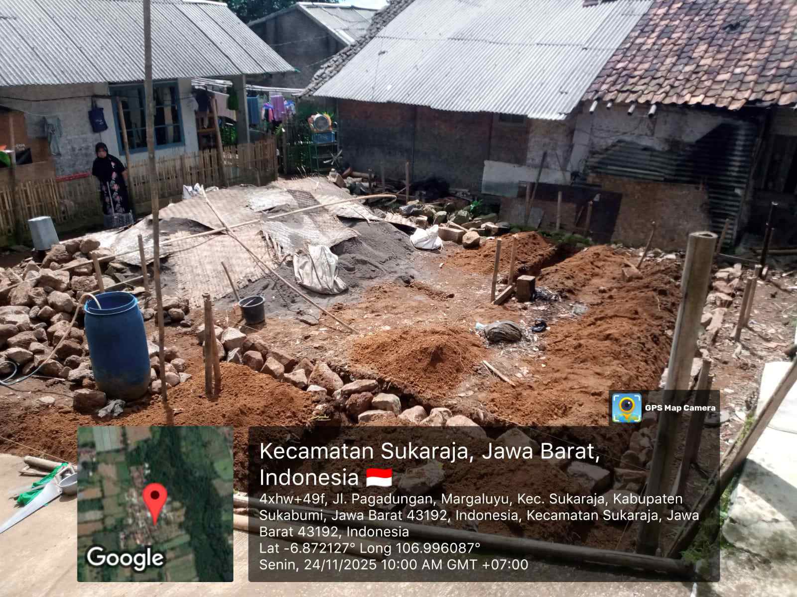 SUKARAJA, sukabumizone.com | Pemerintah Desa (Pemdes) Margaluyu, Kecamatan Sukaraja, resmi memulai pembangunan Rumah Tidak Layak Huni (Rutilahu) dari bantuan provinsi (banprov). Tahapan awal berupa pembongkaran rumah dan pemasangan pondasi telah dikerjakan di Kampung Cikole RT 01 RW 09, tepatnya di rumah milik Bunyamin, warga penerima manfaat.