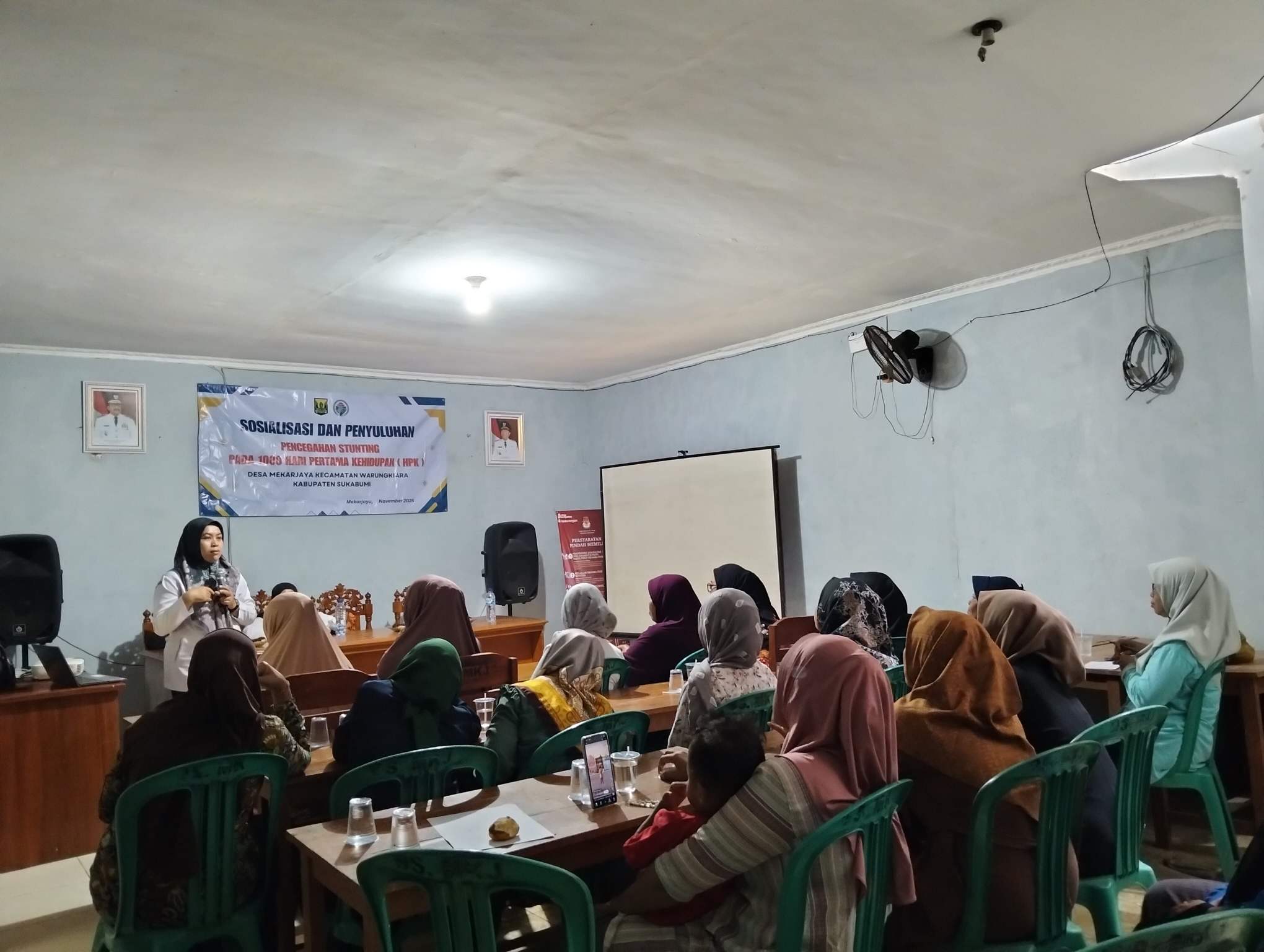 WARUNGKIARA, sukabumizone.com – Pemerintah Desa Mekarjaya, Kecamatan Warungkiara, Kabupaten Sukabumi menggelar sosialisasi dan penyuluhan pencegahan stunting pada Rabu (26/11/2025). Kegiatan yang dipusatkan di Aula Desa Mekarjaya ini menyasar edukasi terkait pencegahan stunting pada 1000 Hari Pertama Kehidupan (HPK).