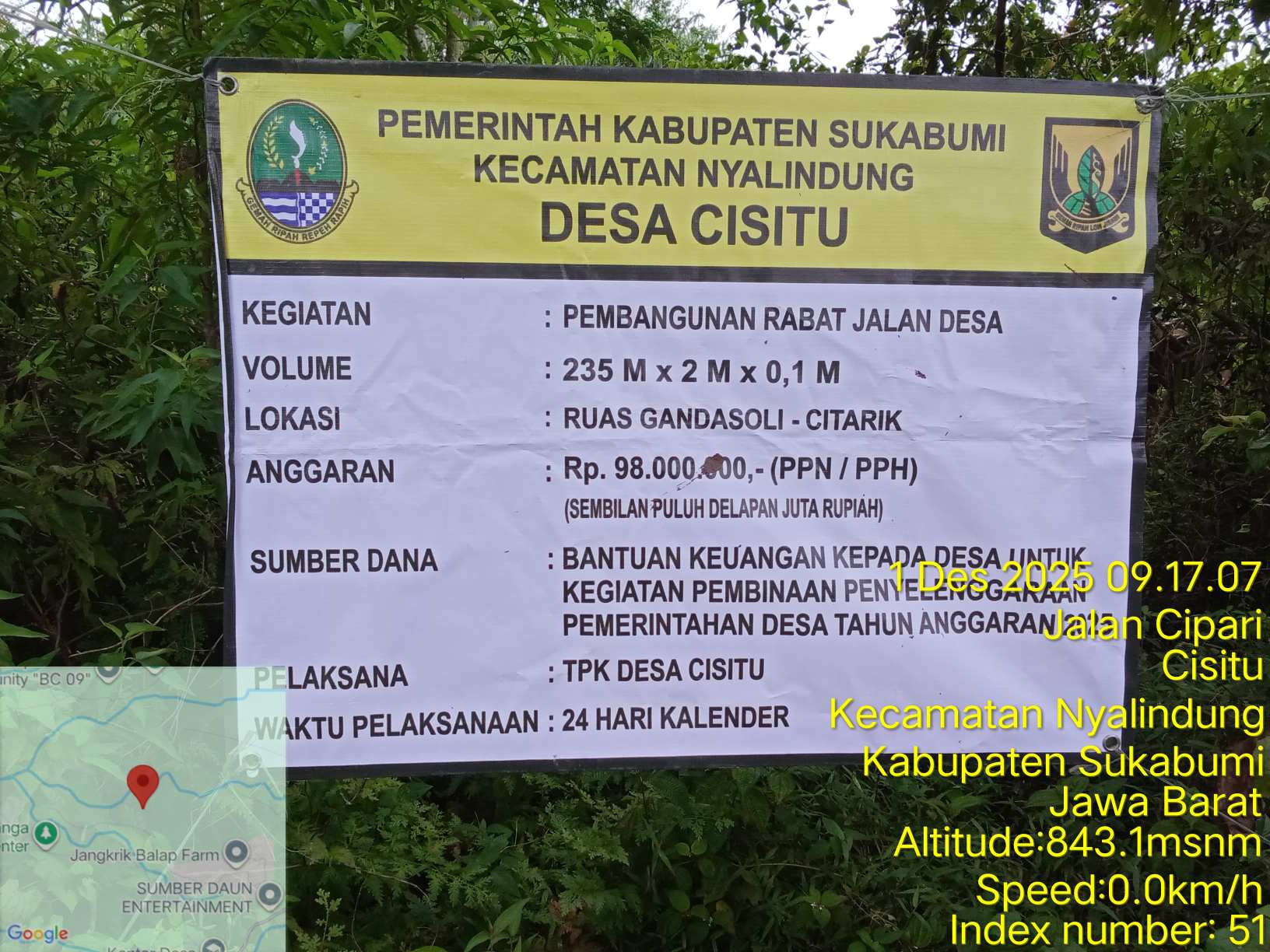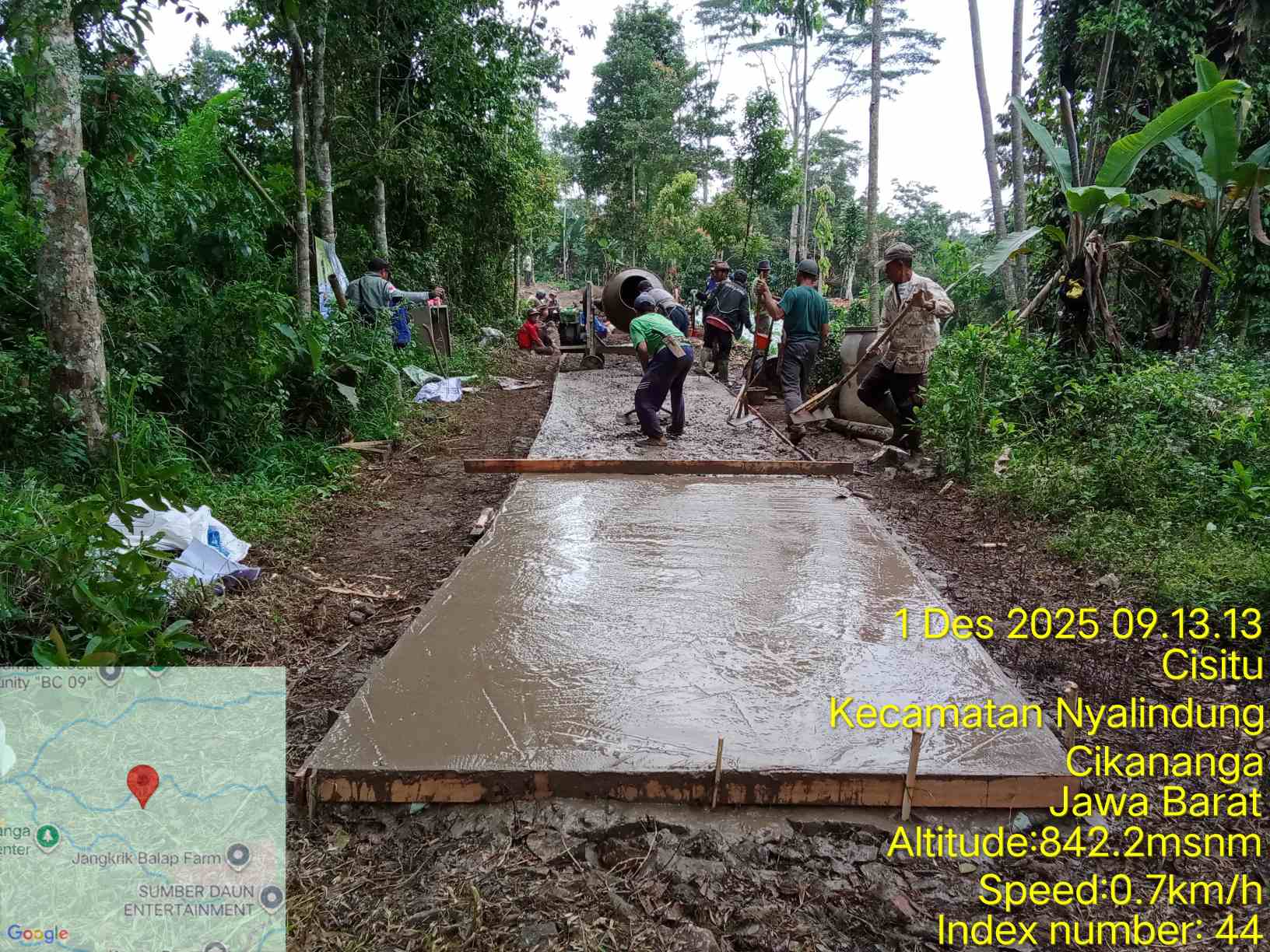 NYALINDUNG, sukabumizone.com || Pembangunan rabat jalan di Desa Cisitu, Kecamatan Nyalindung, Kabupaten Sukabumi mulai memberikan dampak positif bagi warga. Proyek yang berlokasi di jalur Gandasoli–Citarik itu merupakan realisasi Bantuan Keuangan Provinsi (Banprov) Jawa Barat Tahun 2025.