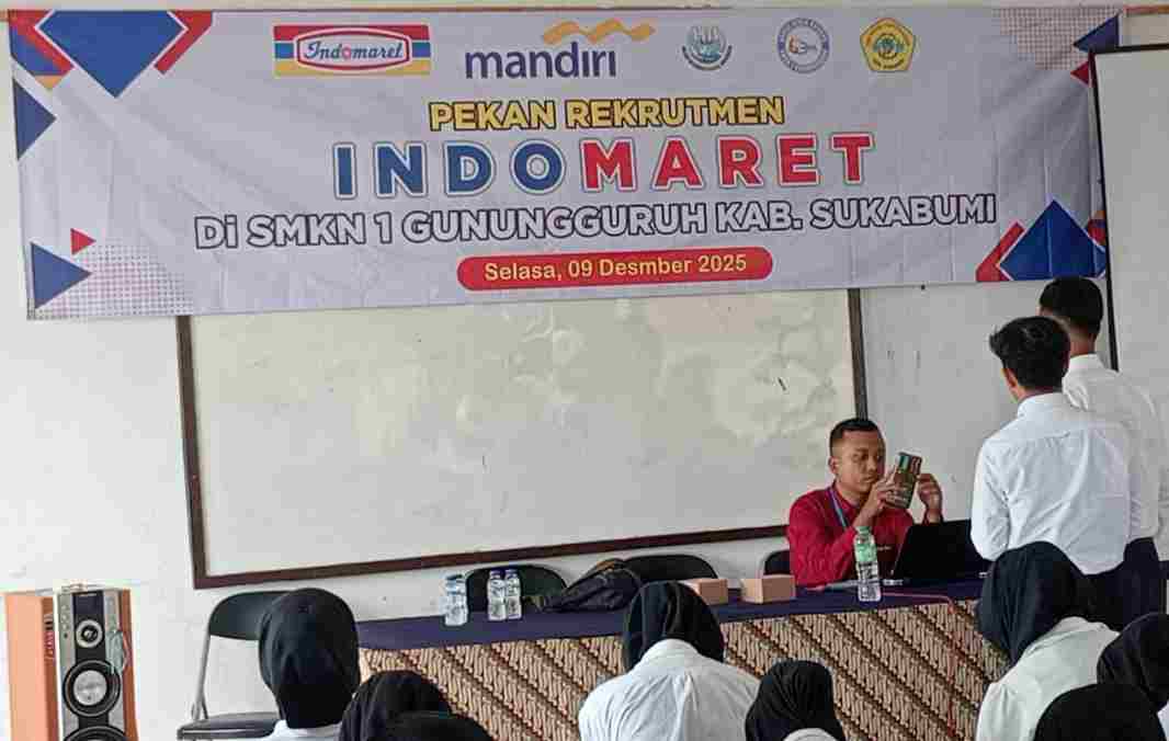 GUNUNGGURUH, sukabumizone.com ll Bursa Kerja Khusus (BKK) SMK Negeri 1 Gunungguruh, Kabupaten Sukabumi, menggelar kegiatan rekrutmen tenaga kerja untuk posisi cashier di salah satu jaringan minimarket terbesar di Indonesia, Selasa (9/12/2025)